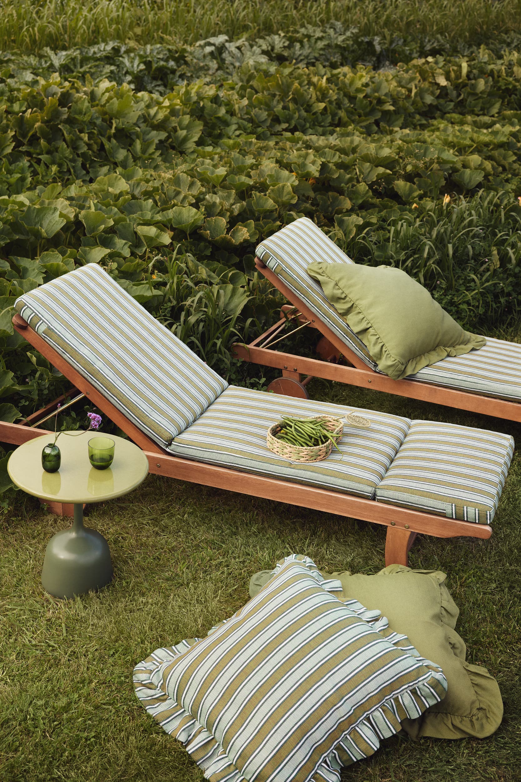 Arbeiten Sie mit dem, was Sie haben. Ein traditioneller Garten kann sich leicht in einen modernen Außenraum verwandeln. Es geht nur darum, Einzelstücke zu finden, die sich gegenseitig ergänzen. Mit unseren vielseitigen Sitzbankbezügen zum Beispiel können Sie Ihre Sitzgelegenheiten ganz einfach bequemer machen und ein gemütliches Plätzchen zum Entspannen schaffen. Oder sorgen Sie mit unseren Bezügen für Liegestühle für Urlaubsstimmung. Wählen Sie Stoffe und Drucke, die Sie ansprechen, und gestalten Sie Ihren Lebensraum nach Ihrem Geschmack.