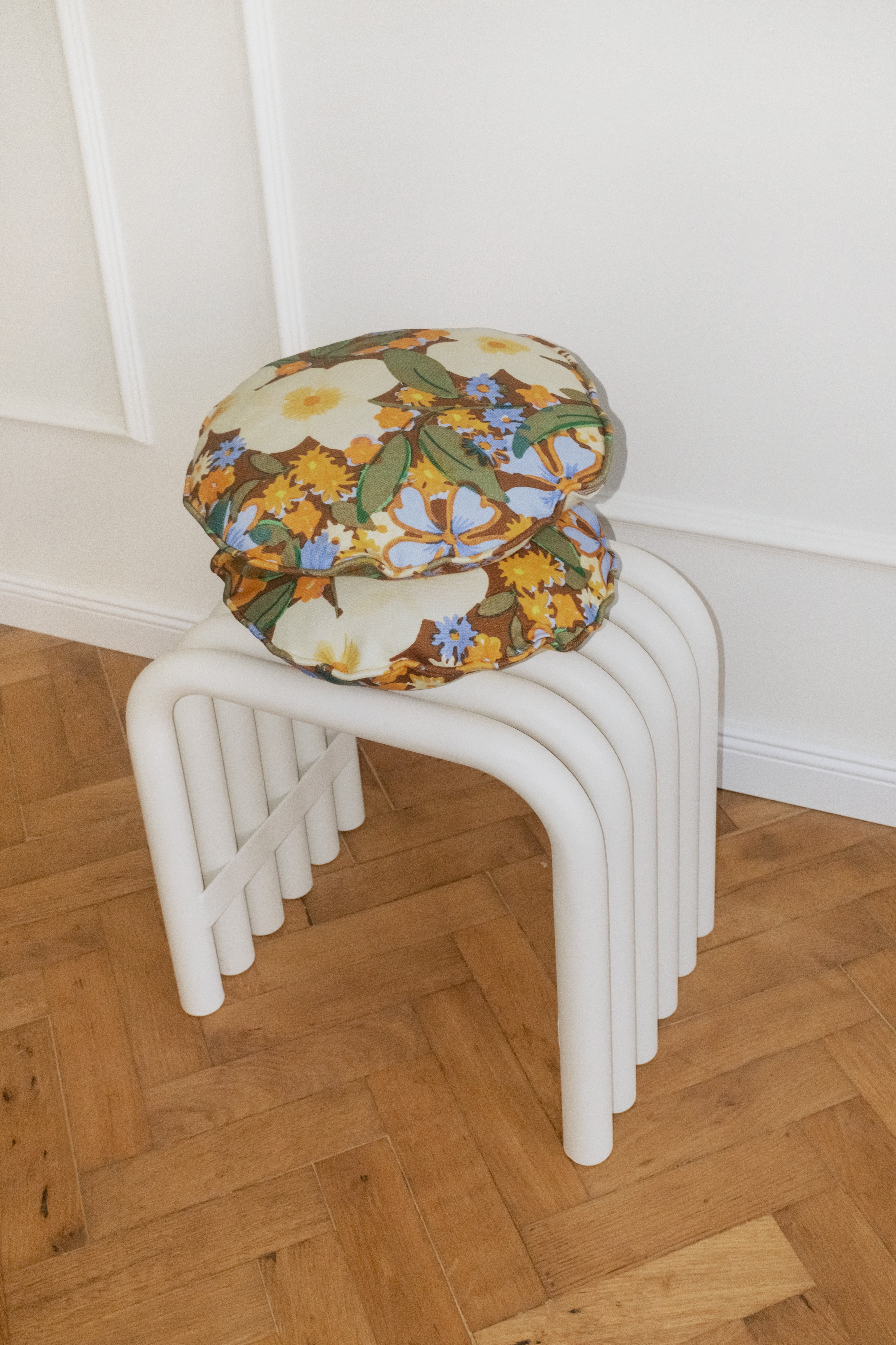 Entfesseln Sie Ihre Liebe zu Floralem mit diesem blühenden Design. First Monday of Spring wurde von der Übergangszeit inspiriert, in der die Natur langsam aus dem Winter erwacht. Kühle nordische Blautöne treffen auf warme Terrakottatöne und Butterblumengelb – ideal, um lebendige Farbtöne in eine minimalistische Basis zu bringen.