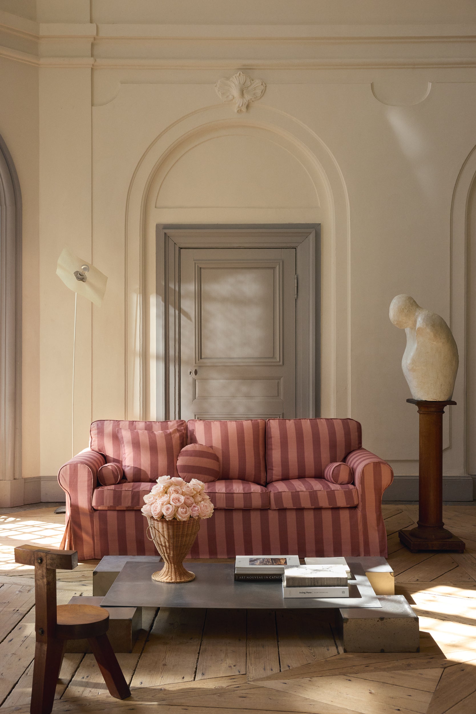 Austine es un estampado a rayas verticales de palo de rosa que transmite una sensación de romanticismo y literatura. Es ideal para estudios, rincones de lectura o habitaciones llenas de texturas superpuestas y detalles especiales.