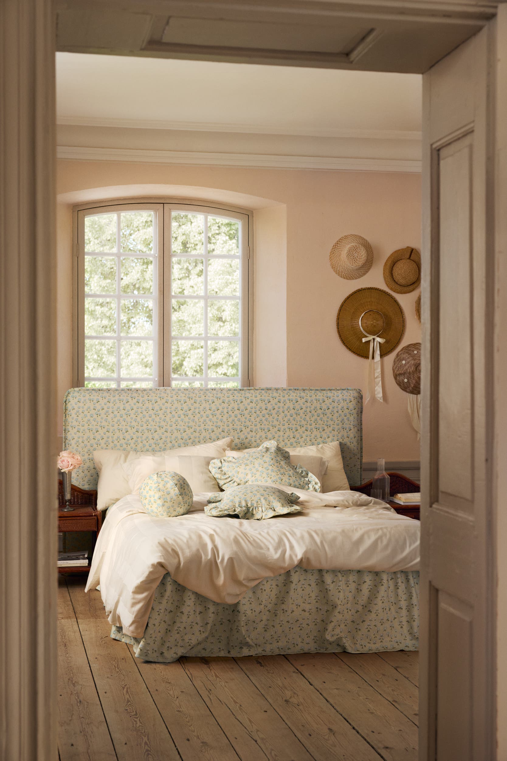 Florence viene con flores azul aciano dispersas sobre un fondo amarillo mantecado. Además, tiene un toque nostálgico bañado por el sol y evoca recuerdos de las tardes de finales de verano en los jardines tan queridos.