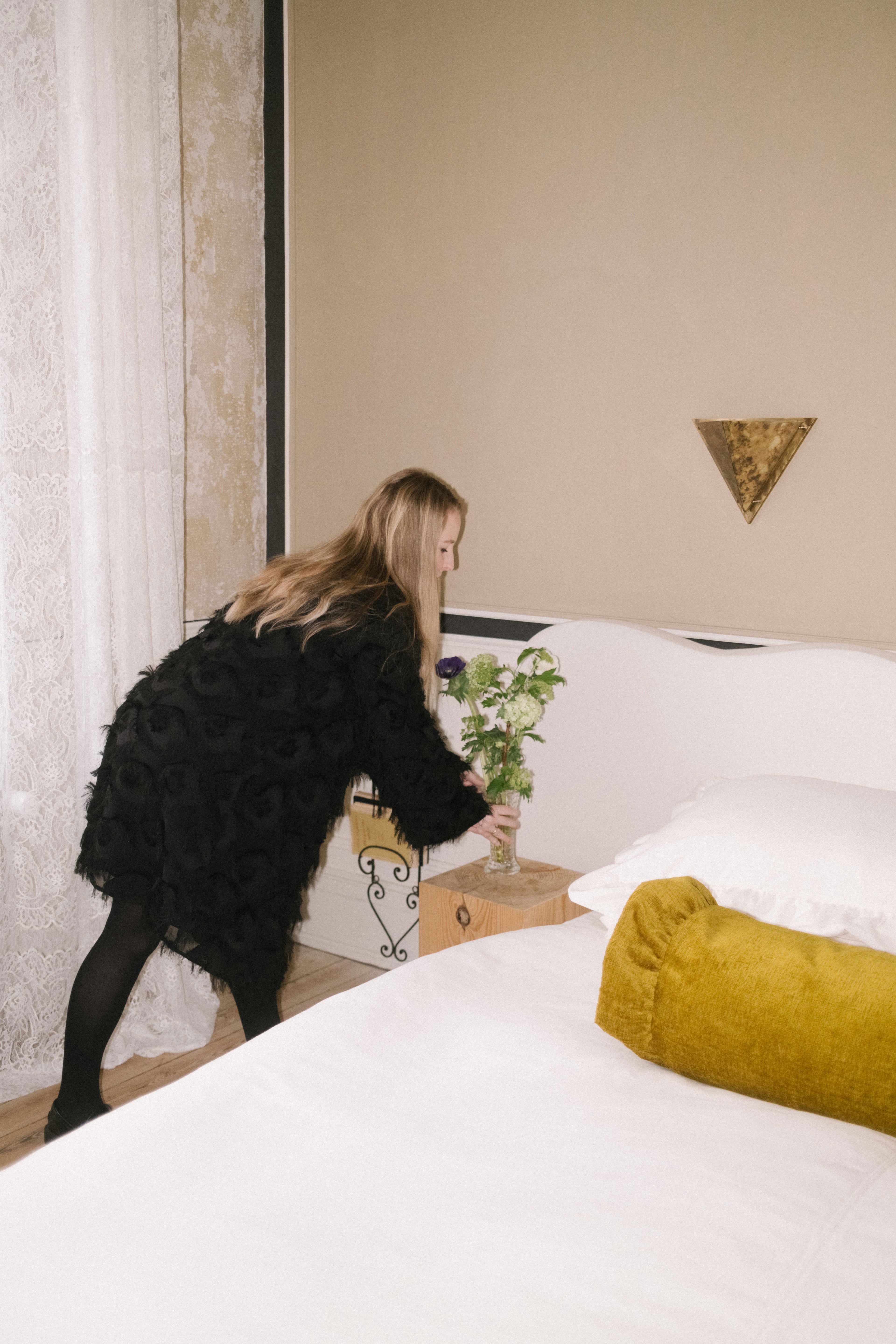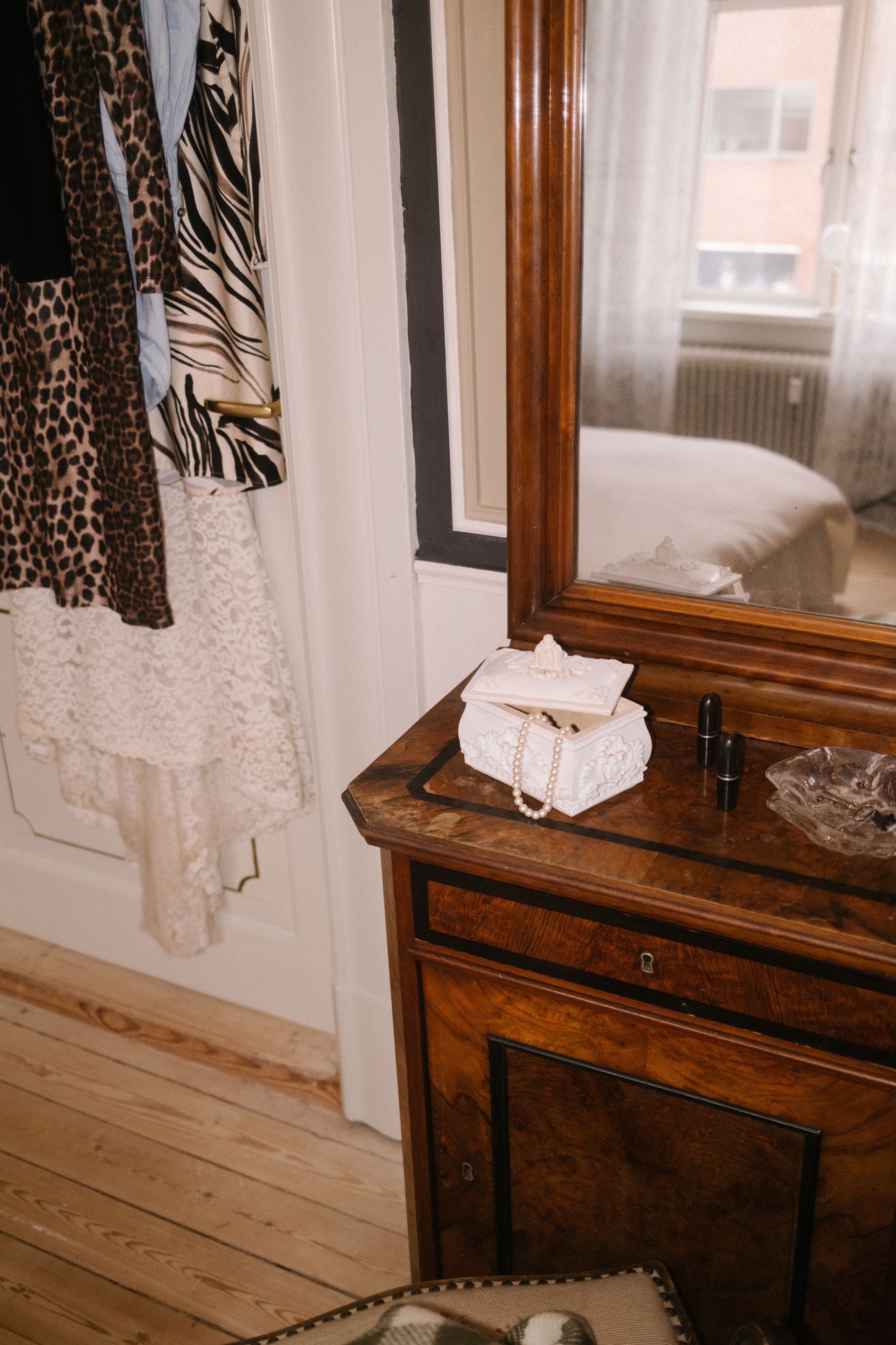 That fascination translates into dark woods, lace, ruffles and pieces with history. Helene loves the thought that something once belonging to another life now lives in hers.