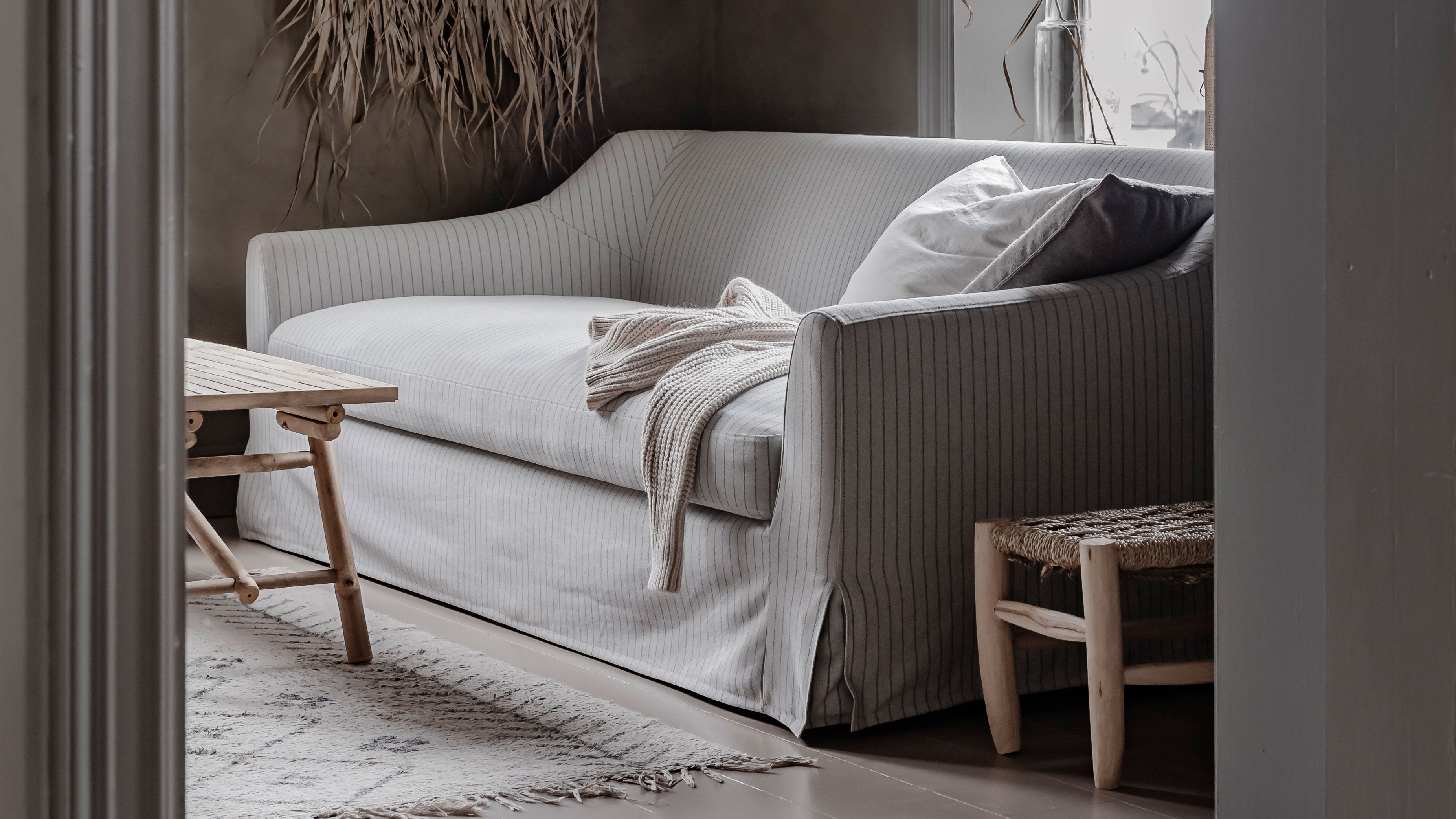 En traditionell soffa behöver inte nödvändigtvis ha ett traditionellt överdrag. Bemz överdrag till Färlöv räcker ner till golvet och har veckade hörn. Du kan köpa soffan på IKEA utan överdrag och med hjälp av Bemz ge den en totalförvandling med ett spännande, vävt bomullstyg, ett överdrag tillverkat av 100% återvunnet material eller ett lyxigt överdrag i sammet eller linne. För dig som är modemedveten finns det mängder av trendfärger att förnya din soffa med. Låt fantasin flöda - vi erbjuder maskintvättbara överdrag till den 2- och 3-sitsiga Färlövsoffan och Färlövfåtöljen i över 150 färger och mönster i flera olika tygkvaliteter.